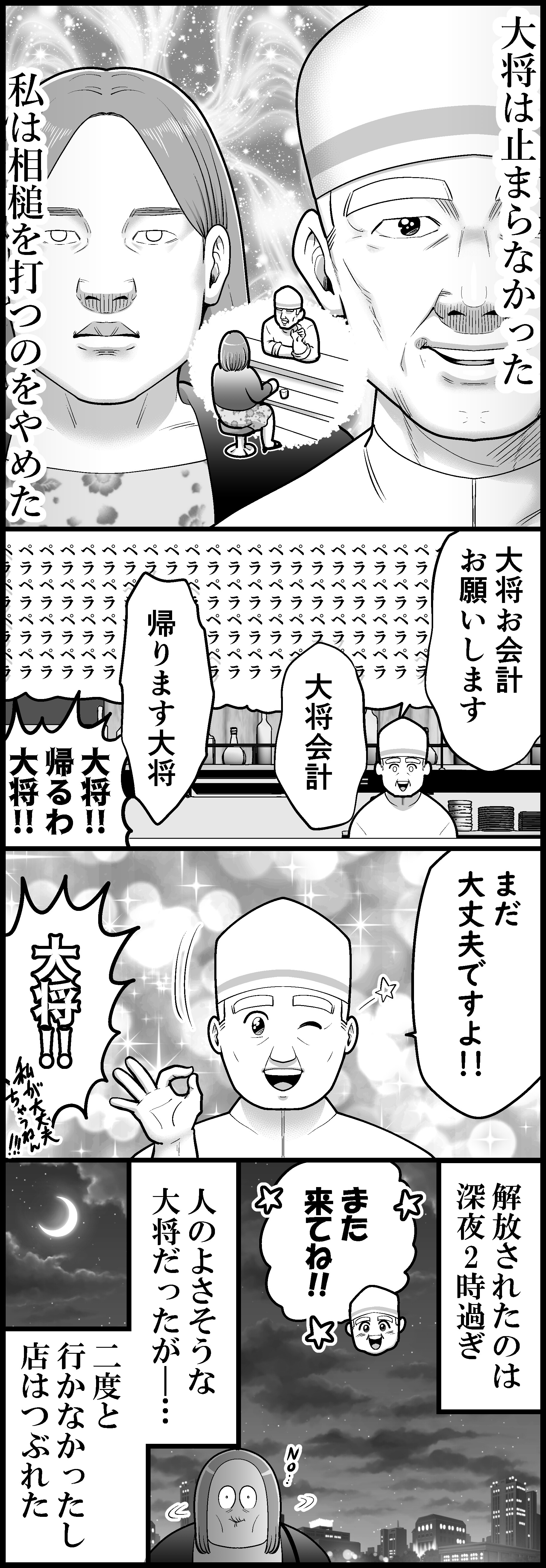この方も大将も悪い人ではないんだけど、あまりにも長すぎるトークは体力もたないですね